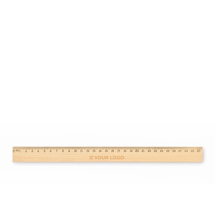 Regla de madera de pino de 30 cm con escala en centímetros por un lado y en pulgadas por el otro. Ofrece una lectura rápida en dos sistemas de medida, útil para tareas de oficina, formación o trabajos técnicos sencillos. El acabado en madera aporta una superficie agradable al tacto y fácil de manipular en el día a día. Por su formato compacto, encaja bien en estuches, carpetas o kits de bienvenida. Recomendable para acciones de merchandising en ferias, academias o eventos corporativos.