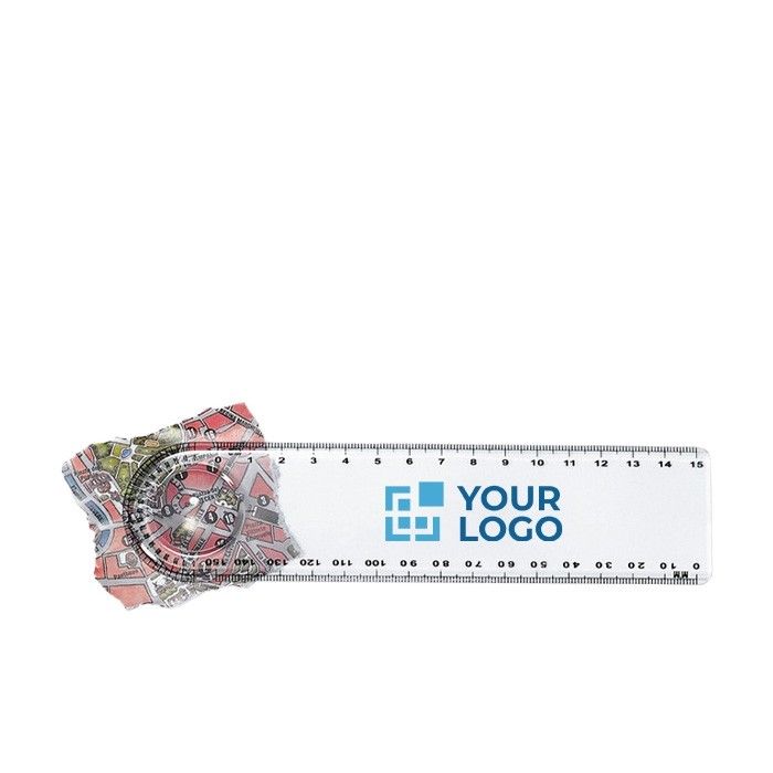 Una regla transparente de 15cm con lupa integrada es una herramienta distintiva que facilita tareas de precisión. Te permite realizar mediciones y, simultáneamente, examinar detalles pequeños en documentos o planos. Su diseño ergonómico asegura un manejo cómodo, lo que refuerza la percepción de tu marca como práctica y accesible. Al regalarla, tu marca se asocia con la atención al detalle y la utilidad, asegurando que tu logo sea un recordatorio constante de tu valor añadido en su día a día.