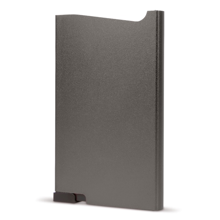 Porta tarjetas de aluminio con botón y almacenaje de 6 tarjetas