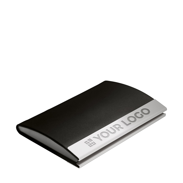 Portatarjetas publicitario en polipiel con metal espejo Black
