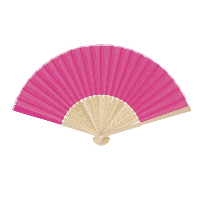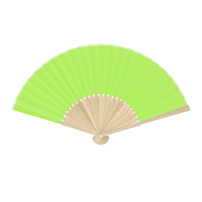 Abanico con varillas de bambú y tela de poliéster en colores