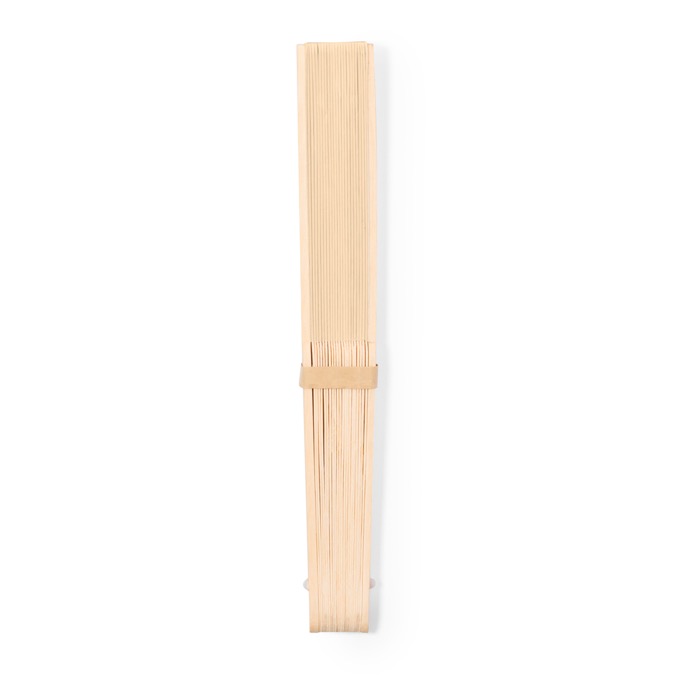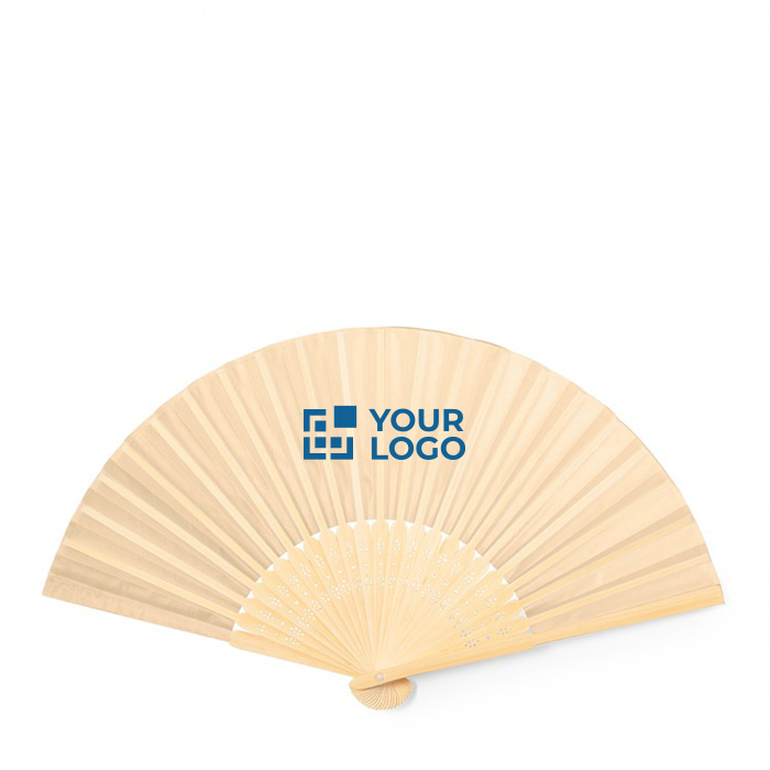 Este abanico fabricado con varillas de bambú y tela de poliéster se convertirá en un imprescindible para todos tus futuros eventos y celebraciones al aire libre. Y es que con su diseño clásico y en tonos naturales, es una firme apuesta por la sencillez y la proyección de una imagen de marca que apuesta por lo sostenible y el minimalismo. Asimismo, es posible personalizar el producto con el logo de tu empresa, tanto en las varillas para más discreción, como en la tela para una mayor visibilidad mientras se usa el abanico.