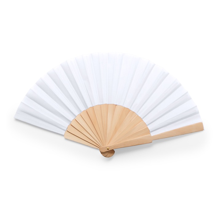 - Abanico de madera con tela de poliéster