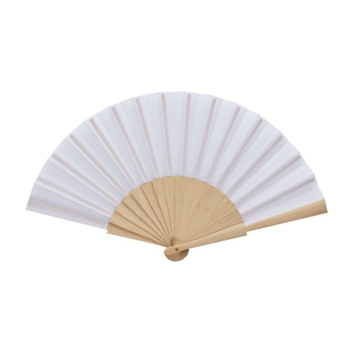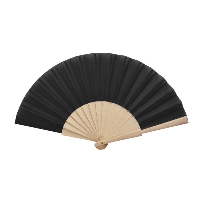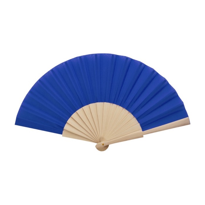 Abanico promocional en madera y poliéster con entrega express y caja de regalo