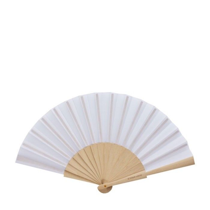 Para eventos donde la elegancia discreta es clave, un abanico de madera y poliéster liso te ofrece una solución versátil. Disponible en una amplia gama de colores, puedes alinear este artículo con la paleta de tu marca, garantizando una integración visual coherente. Su diseño proporciona un alivio efectivo del calor, siendo un accesorio útil que tus clientes llevarán y utilizarán. Al personalizarlo, tu logotipo se asociará con un estilo sofisticado y una atención al bienestar, generando una impresión positiva y duradera en la mente de tu público.