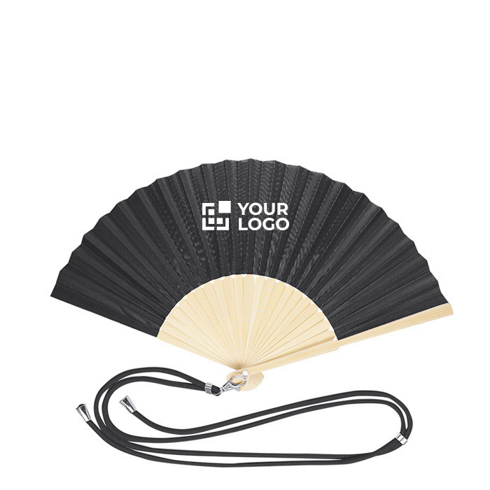 Abanico de poliéster resistente con varillas de bambú flexible, pensado para llevar y usar a diario en jornadas calurosas. Incorpora un cordón ajustable a juego, que ayuda a mantenerlo a mano y reduce pérdidas durante eventos o desplazamientos. Superficie amplia para personalización con logo, útil en ferias, campañas de verano o acciones de bienvenida en oficina.