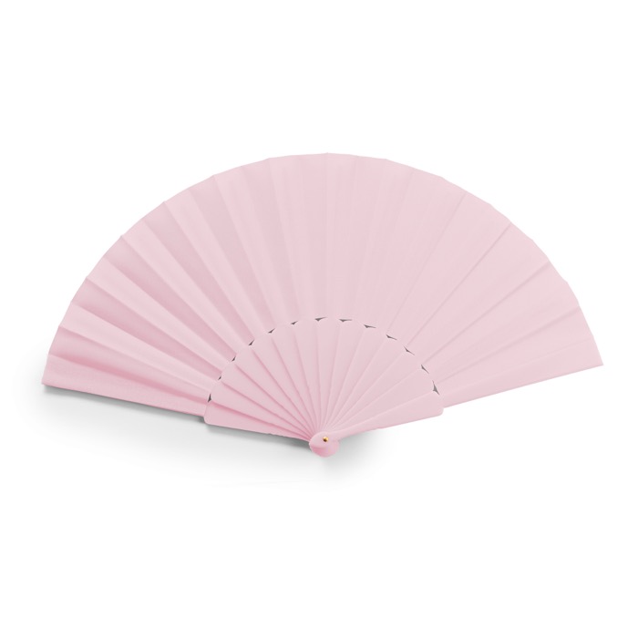 Abanico de mano fabricado en plástico y poliéster. Ofrecido en una amplia gama de colores brillantes, es perfecto para eventos al aire libre y días calurosos de verano. Su diseño práctico y ligero facilita su transporte y uso, permitiendo que los asistentes a cualquier evento se mantengan frescos mientras disfrutan del entorno. La estructura de plástico proporciona durabilidad, mientras que el poliéster asegura un movimiento suave y eficiente del aire. Ideal para personalizar con el logo de tu empresa, este abanico se convierte en una herramienta efectiva para aumentar la visibilidad de tu marca en ferias, conferencias o eventos corporativos al aire libre.