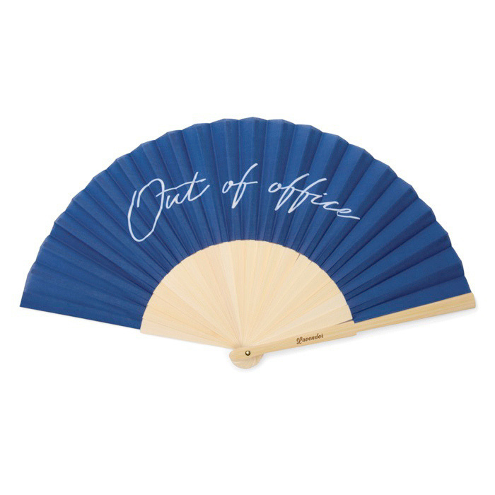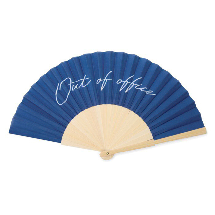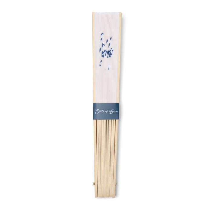 Abanico portátil de bambú con mensaje ‘’Out of the office’’