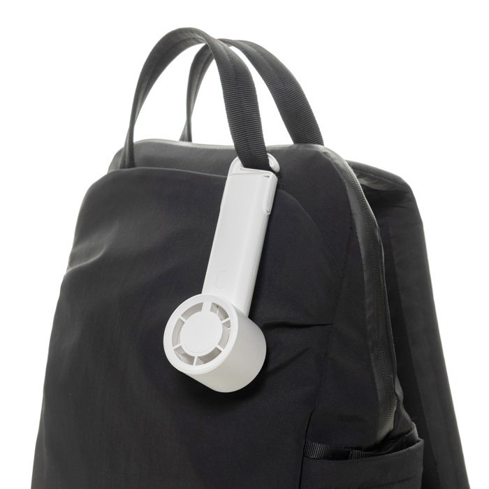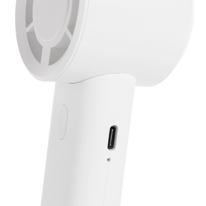 Ventilador portátil de plástico reciclado con certificación RCS (Recycled Claim Standard). pensado para refrescarse sin complicaciones en oficina. viaje o en casa. Incorpora batería recargable de iones de litio de 1200mAh con hasta 6 horas de uso y carga en unas 3 horas mediante cable USB-A a USB-C incluido. Permite elegir entre tres velocidades y cuenta con gancho extensible que también sirve como soporte para sobremesa. Se entrega en caja kraft con certificación de Sostenibilidad Forestal (FSC). Útil para acciones de marca en eventos y campañas de verano.