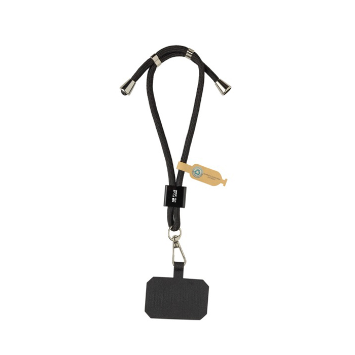 Correa ajustable para muñeca fabricada en RPET (tereftalato de polietileno reciclado) con certificación RCS (Recycled Claim Standard), que asegura un 19 % de contenido reciclado según el peso total del artículo. Diseñada con un ajustador deslizante, permite regular la longitud para un ajuste cómodo y seguro, ideal para entrenamientos, recados o viajes cortos. El cordón de alta resistencia, junto con la anilla y el gancho de conexión de precisión, protege el teléfono de caídas accidentales y facilita el uso con las manos libres. Su diseño en RPET ofrece resistencia y durabilidad con un estilo moderno, y es libre de PVC. Embalado a granel, es perfecto para empresas que buscan soluciones prácticas y sostenibles para sus empleados o como parte de un kit de bienvenida corporativo.