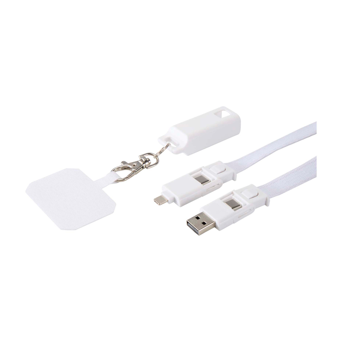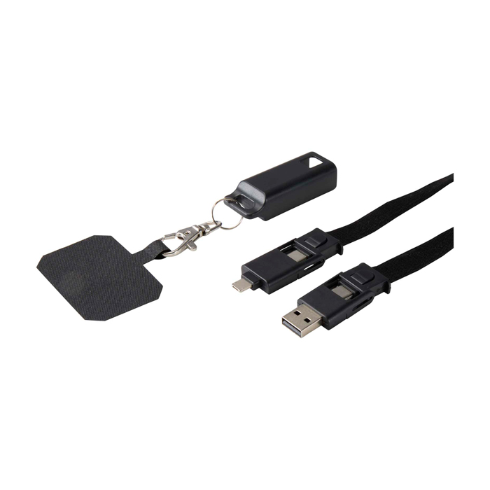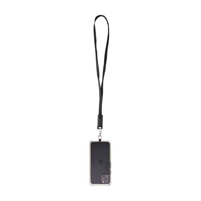 Lanyard para móvil de plástico reciclado con cable de carga 5 en 1 65W