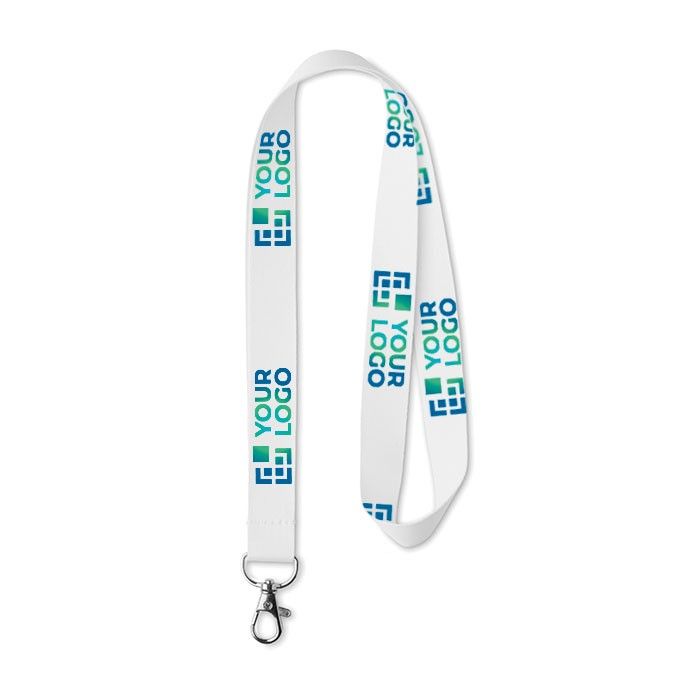 Lanyard de PET reciclado especial con cierre de mosquetón metálico y diseñado para una personalización por sublimación. Generalmente, sus ámbitos de uso más habituales son: como regalo promocional para clientes o asistentes, para poder llevar una acreditación dentro de un puesto de trabajo o en alguna convención, feria o acontecimiento similar y, generalmente, para transportar objetos ligeros que se necesite tener a mano. Estos lanyards están hechos de plástico reciclado, de manera que se reduce el impacto en el medio ambiente con su fabricación e, igualmente, se puede colocar el logotipo de empresa deseado para que vaya acorde a la imagen corporativa, de manera que tengan ese carácter particular que identifique a la propia compañía. No se aceptarán devoluciones sin motivos aprobados de este producto, con o sin marcaje, ya que se fabrica bajo pedido y a medida.