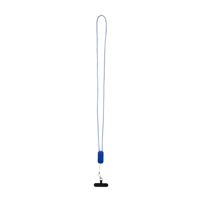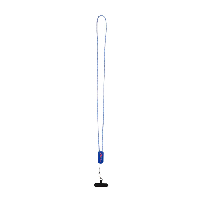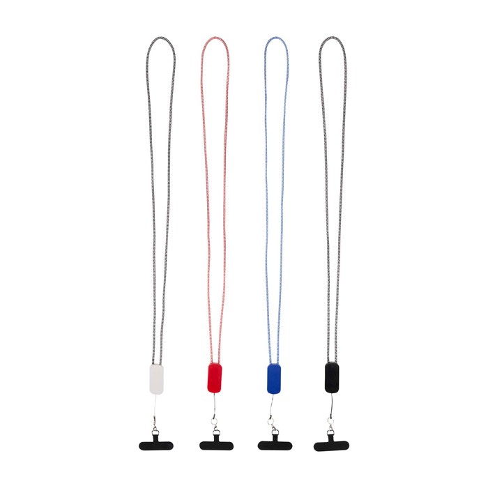 Lanyard para smartphone fabricado con materiales reciclados y pensado para mantener el móvil accesible mientras se carga en movimiento. Incorpora un cable 5 en 1 de 27W con entradas USB-A (Universal Serial Bus tipo A) y USB-C (Universal Serial Bus tipo C), y salidas USB-C (Universal Serial Bus tipo C) y Lightning (conector Apple). Incluye un inserto transparente que sujeta el teléfono a través de la funda, facilitando el uso manos libres sin perder seguridad. Útil para acreditaciones, eventos, equipos comerciales y personal en ruta.