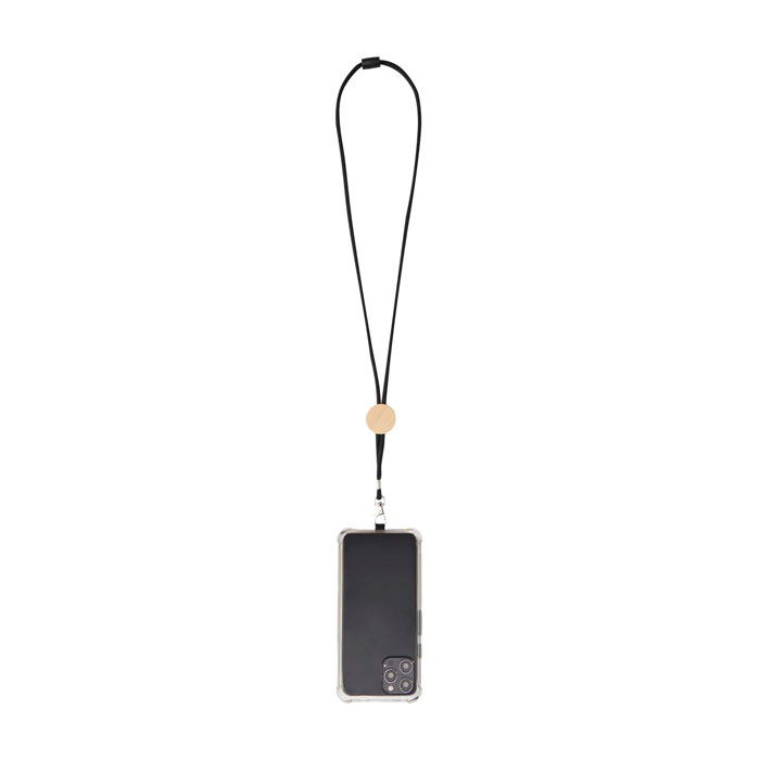 - Lanyard para smartphone con pieza central de bambú de origen responsable