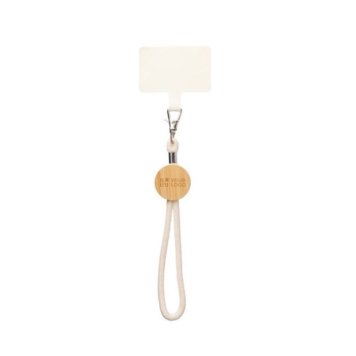 Pulsera de algodón (D16) con una placa de bambú para imprimir o grabar tu logo. Esta pulsera no solo cuenta con un diseño simple y cuidado, sino también es un accesorio práctico ya que permite llevar el móvil o la acreditación de forma cómoda. La placa de bambú aporta un toque único, pensada si la imagen de tu marca se enfoca hacia lo natural. Aprovecha el servicio Express para recibirlo rápidamente y sorprende a tus colaboradores con este detalle que refleja compromiso y atención al detalle.