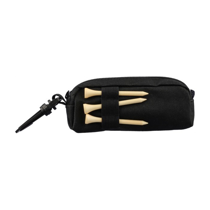 Activa tu marca en torneos: set de golf con estuche con cremallera y mosquetón, incluye bolas de entrenamiento y tees de haya para campañas deportivas.