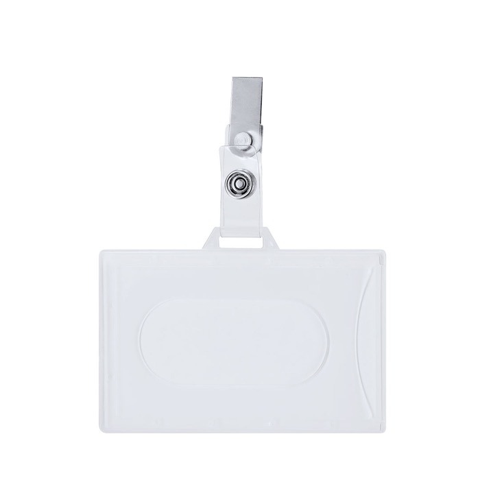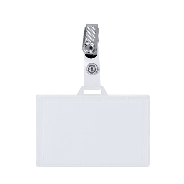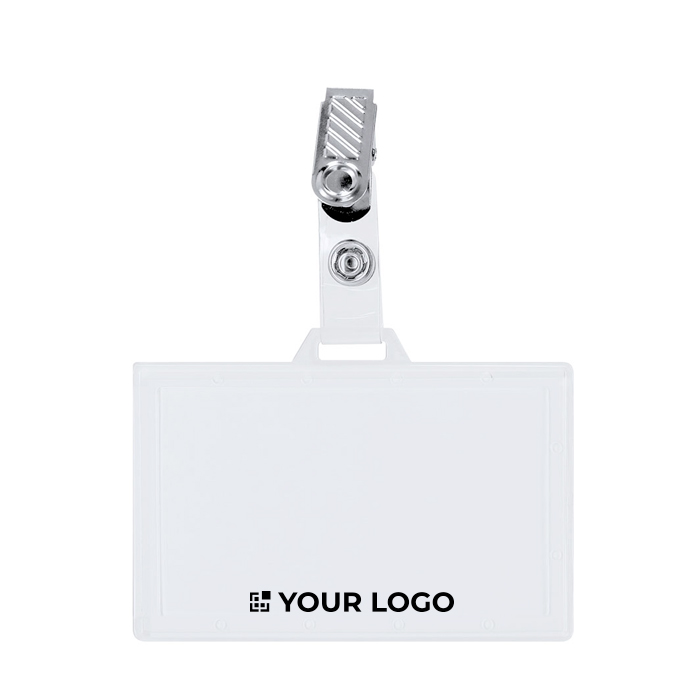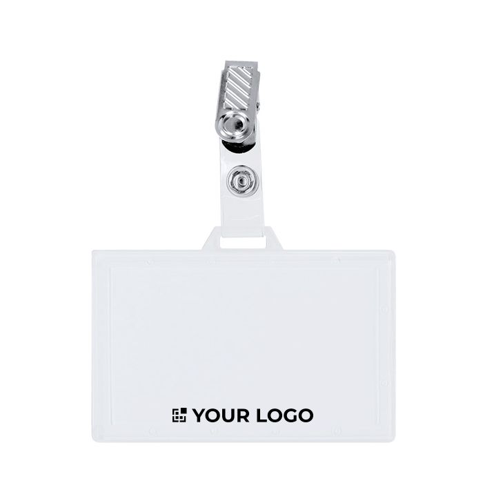 Identificador de plástico rígido con pinza metálica en orientación horizontal, pensado para llevar la acreditación siempre visible. La pinza sujeta con firmeza a ropa, bolsillo o cinturón, y el cierre extraíble permite colocar o retirar la tarjeta con rapidez cuando cambian los accesos. Puede utilizarse también combinado con un lanyard para acreditaciones en movimiento y para equipos que alternan espacios. Útil en eventos corporativos, ferias, recepción, control de visitas y entornos de oficina.