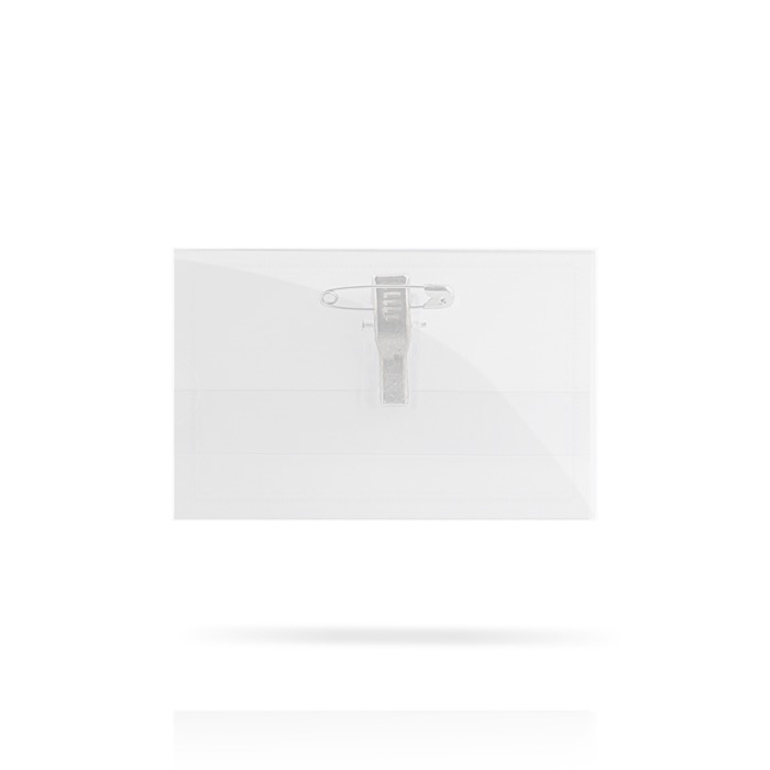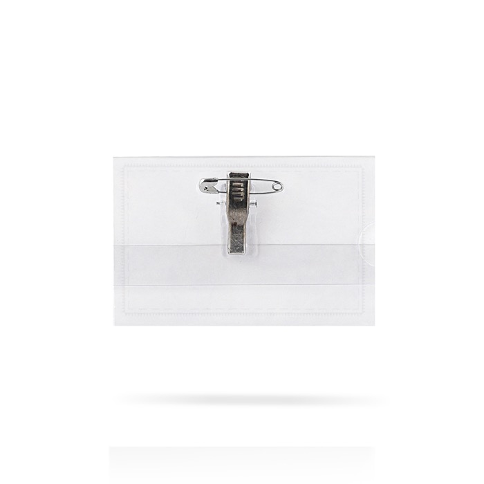Identificador de plástico transparente con pasador trasero 9x5.5cm