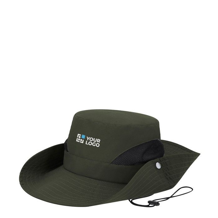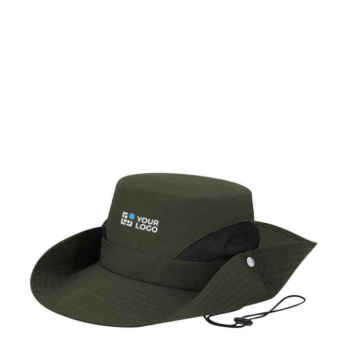 Gorro de poliéster estilo safari con cordón de transporte ajustable