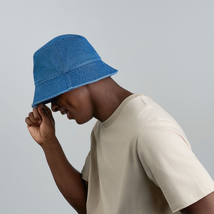 Sombrero tipo panamá en denim de algodón reciclado teñido con DyStar®