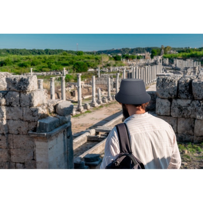 - Sombrero Panamá en poliéster reciclado, repelente al agua