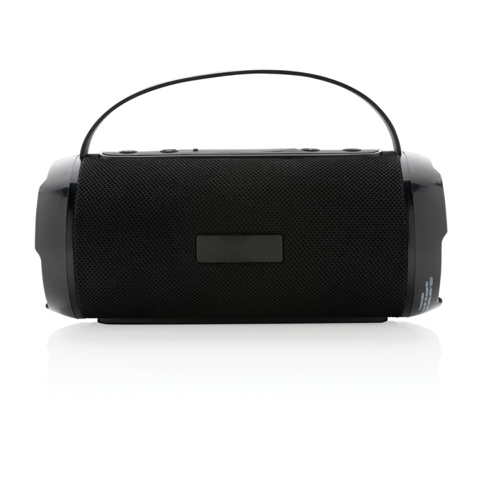 Altavoz inalámbrico de 6W fabricado con ABS y PET reciclado certificado RCS (Recycled Claim Standard). Con un contenido reciclado total del 41% basado en el peso total del artículo, este altavoz asegura una cadena de suministro completamente certificada de materiales reciclados. Resistente al agua con clasificación IPX 4, es ideal para actividades al aire libre como picnics, barbacoas, la playa o fiestas en la piscina. Equipado con una batería de 1200 mAh, ofrece hasta 6 horas de reproducción continua. La tecnología BT 5.0 garantiza una conexión fluida y un sonido claro, con un rango de hasta 10 metros. Incluye micrófono y función de recepción de llamadas. Presentado en una caja de kraft con mezcla FSC, viene con un cable de carga de TPE reciclado certificado por RCS. Perfecto para merchandising de verano, especialmente en eventos al aire libre.