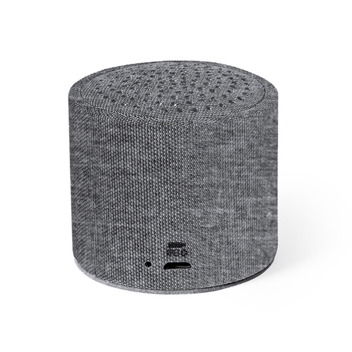 Altavoz compacto Bluetooth® 5.0 con carcasa de poliéster RPET, un material sostenible elaborado a partir de plástico reciclado. Ofrece 3W de potencia, asegurando un sonido claro y potente, y es compatible con dispositivos iOS y Android, lo que facilita su uso en cualquier entorno corporativo. Incluye un cable de carga micro USB para mantenerlo siempre listo para su uso, y una base antideslizante que garantiza estabilidad en cualquier superficie. Con una capacidad de 300mAh, proporciona un tiempo de reproducción adecuado para reuniones o eventos. Ideal para empresas que buscan integrar soluciones tecnológicas sostenibles en sus estrategias de marketing o comunicación interna.