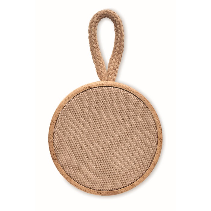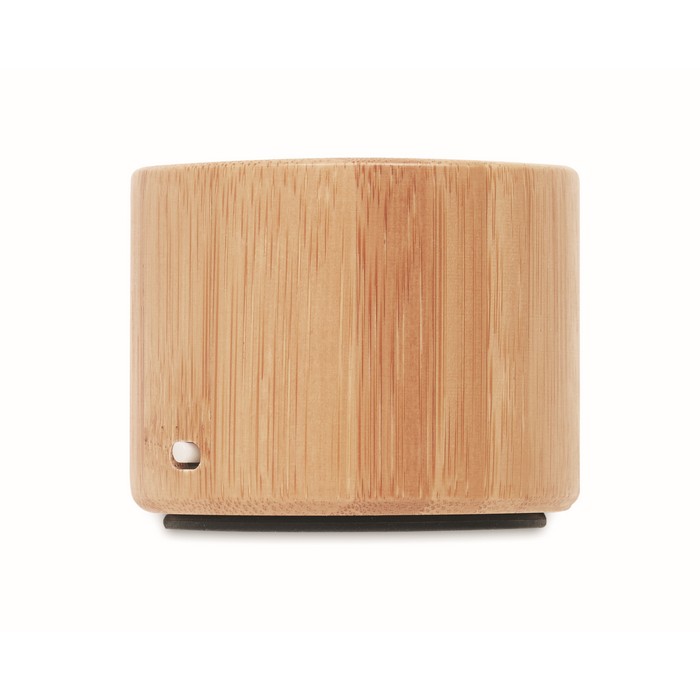 Altavoz inalámbrico 5.1 fabricado en ABS con una elegante carcasa de bambú, que aporta un toque natural y distintivo. La parte superior está recubierta de algodón, y cuenta con un asa para facilitar su transporte. Equipado con un indicador de luz LED, este altavoz incluye una batería recargable de Li-POL de 300 mAh, ofreciendo una autonomía de aproximadamente 3 horas. Dispone de cuero sintéticoerto para tarjetas SD y conexiones AUX/USB, además de función manos libres. Con una potencia de salida de 3W, 3 Ohm y 5V, es ideal para reuniones o eventos corporativos. Perfecto para empresas que buscan integrar productos sostenibles en sus campañas de marketing.