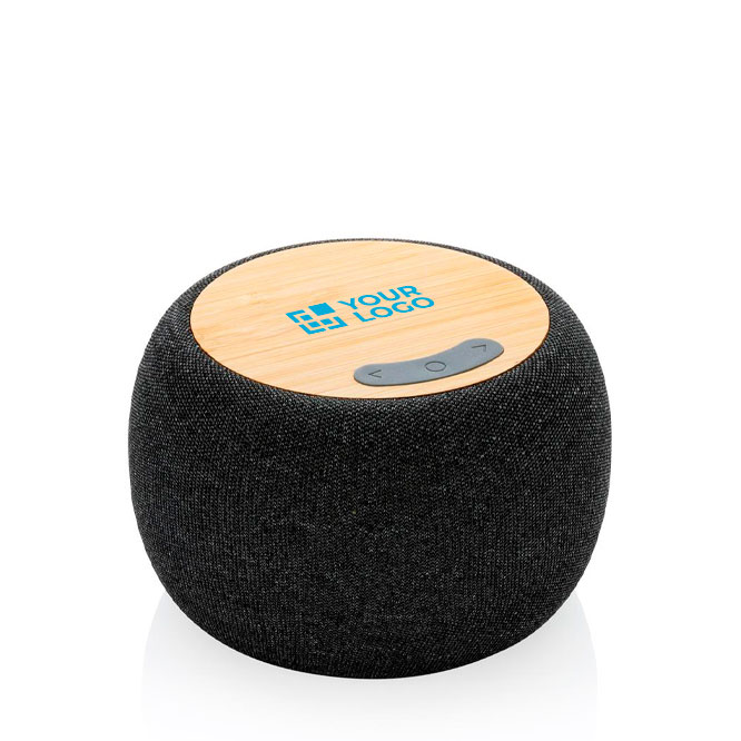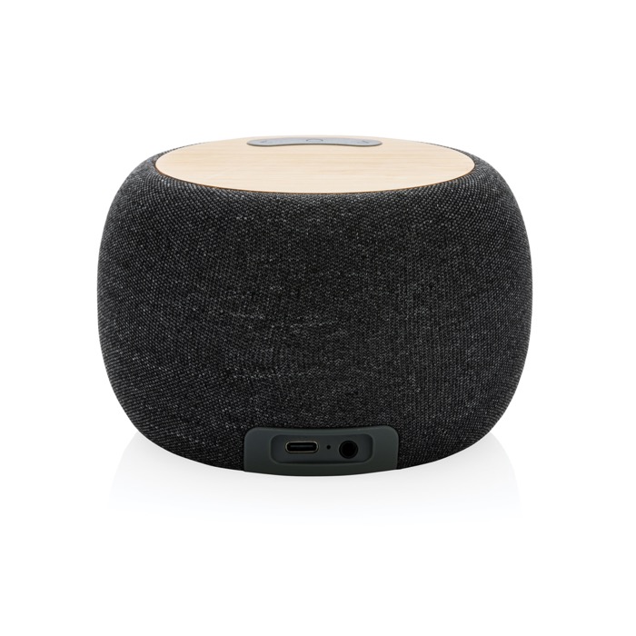 Altavoz inalámbrico de 5W fabricado con FSC® 100 % bambú, ABS y PET reciclados con certificación RCS (Recycled Claim Standard). Este altavoz combina un diseño elegante y minimalista con un sonido nítido, ideal para cualquier entorno corporativo. Con un contenido reciclado total del 51%, garantiza una cadena de suministro certificada de materiales reciclados. Equipado con una batería de 1200 mAh, ofrece hasta 6 horas de reproducción continua. La tecnología BT5.3 asegura una conexión fluida y un rango de hasta 10 metros. Incluye un micrófono para atender llamadas y se presenta en una caja kraft mixta FSC®. El cable de carga TPE reciclado certificado GRS y la ausencia de PVC en el artículo y sus accesorios refuerzan su compromiso con la sostenibilidad. Perfecto para salas de reuniones, este altavoz es una opción práctica para conferencias y presentaciones.