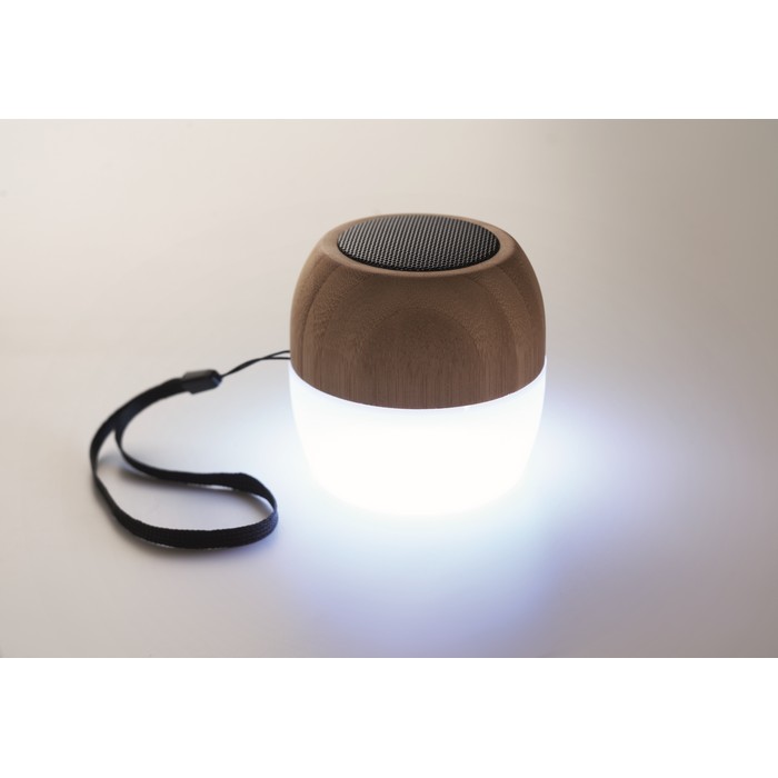 Altavoz inalámbrico de bambú con luz ambiental y correa para llevar a todas partes