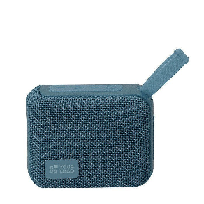 Altavoz estéreo Bluetooth® de plástico con acabado mate y malla frontal en poliéster de plástico reciclado 300D, pensado para uso diario en oficina o eventos. Integra micrófono para llamadas con manos libres y panel de control superior para gestionar reproducción y volumen. Incluye radio FM y lector para tarjetas de hasta 32 GB, útil cuando no se quiere depender del móvil. Se carga mediante cable USB-A a USB-C e incorpora correa de piel sintética para transporte. Buen recurso para acciones de marca en ferias o regalos de equipo.