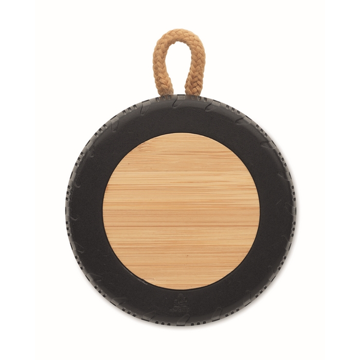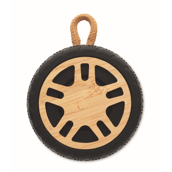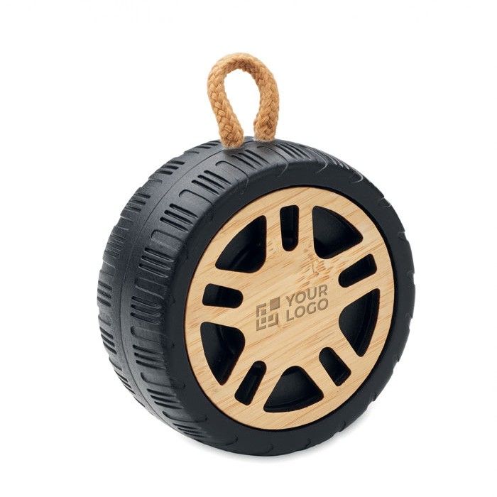 Con un altavoz inalámbrico de diseño único, tu marca destacará por su creatividad y compromiso ecológico. Este altavoz de 3W, con forma de neumático, está fabricado en ABS reciclado, lo que refuerza tu responsabilidad ambiental. Su detalle de bambú y asa de algodón facilitan el transporte, permitiendo que tus clientes o empleados lo lleven a cualquier lugar. La batería recargable de 300 mAh asegura un uso prolongado, ideal para reuniones informales o actividades al aire libre. Un accesorio que genera visibilidad para tu empresa en diversos contextos.