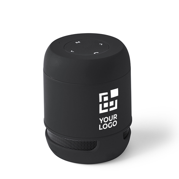 Este altavoz de diseño compacto, desenfadado y suave se presenta con un acabado disponible en divertidos y alegres colores. Ofrece 3W de potencia y tiene Bluetooth 3.0, función de manos libres, una ranura para tarjetas mini SD de hasta 32 GB de capacidad y una entrada auxiliar de línea mediante conexión jack de 3,5 mm. Asimismo, es compatible con iOS y Android, y la capacidad de su batería es de 200 mAh. Incluye cable de carga mini USB, cable auxiliar jack de 3,5 mm y se suministra en bolsa de burbuja y caja de diseño. Por todo ello, y gracias a la posibilidad de personalizarlo con tu logotipo mediante tampografía, es uno de los artículos que más ha conquistado a nuestros clientes.