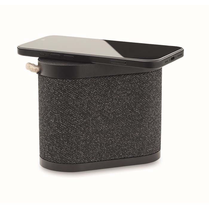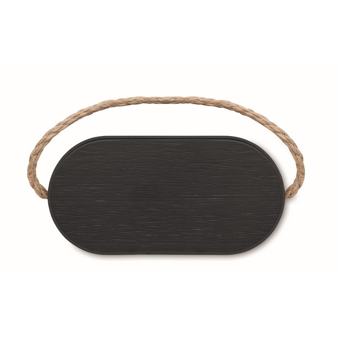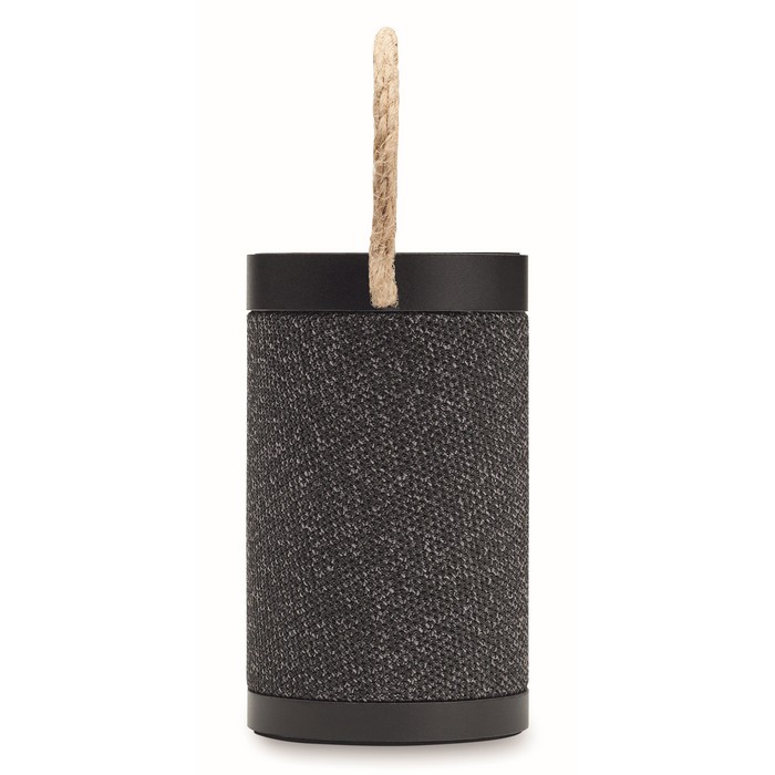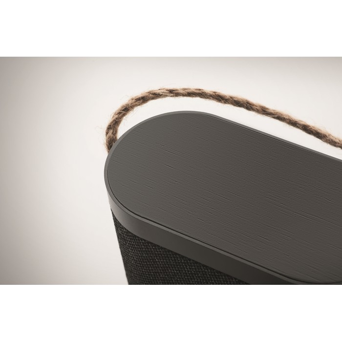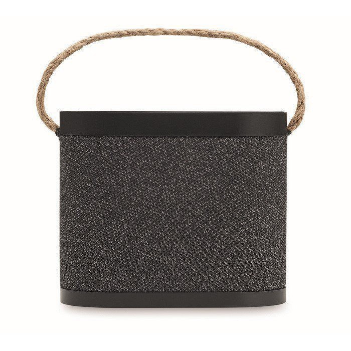 Altavoz negro inalámbrico con asa de transporte de yute 15W