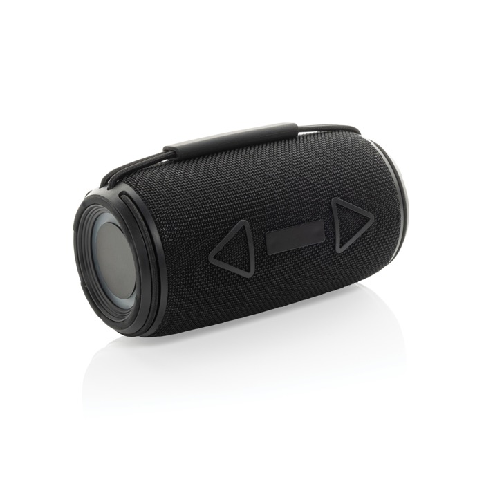 Altavoz de 16W fabricado con plástico ABS reciclado con certificación RCS (Recycled Claim Standard) y tejido RPET. Ofrece un rendimiento de audio excepcional y durabilidad, con un bajo impacto ambiental. Con una salida de 16W y subwoofers dobles, proporciona graves profundos y un sonido nítido para una experiencia auditiva inmersiva. Su clasificación IPX4 lo hace ideal para exteriores. El asa de transporte y la batería de iones de litio de 1500 mAh permiten portabilidad y hasta 7 horas de reproducción al 50% del volumen. La tecnología Bluetooth 5.3 asegura conectividad fluida y emparejamiento automático. Incluye micrófono y función de captura para llamadas manos libres. Con un contenido reciclado del 37% y libre de PVC, se presenta en una caja kraft. Ideal para eventos corporativos o como herramienta de marketing sostenible.