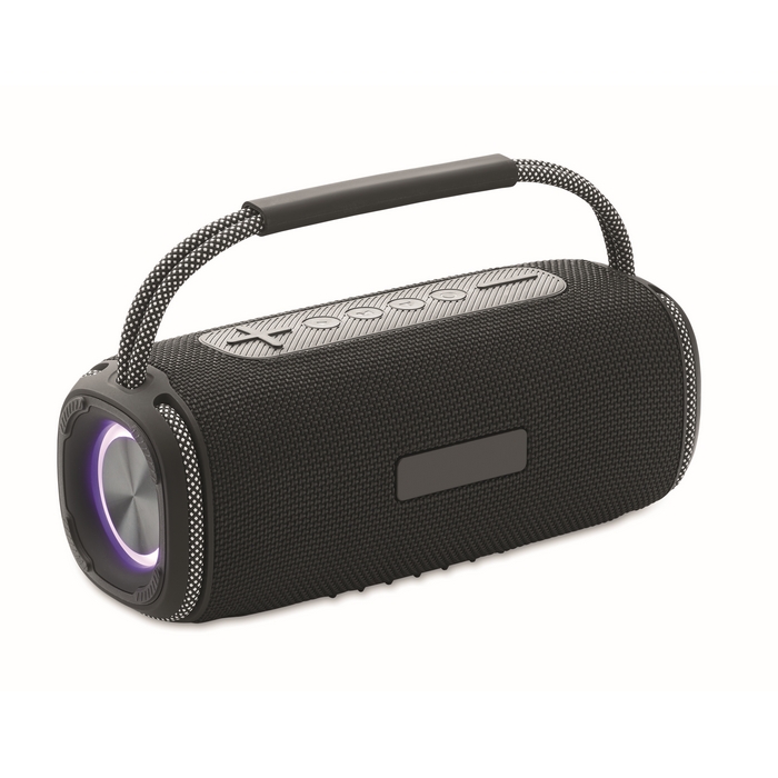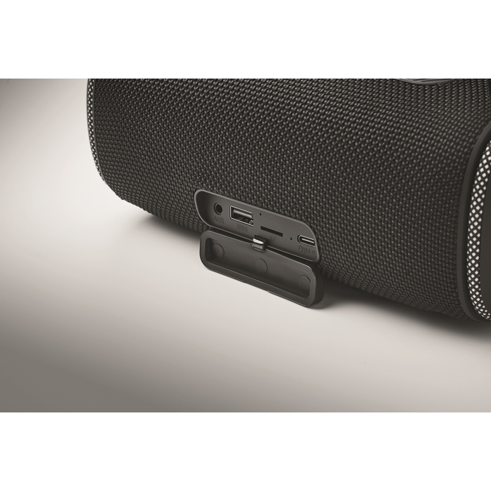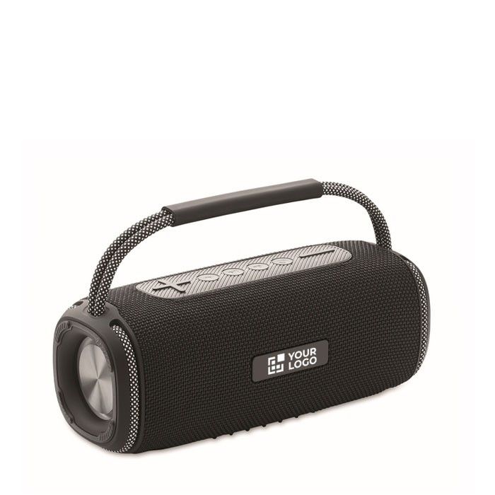 Altavoz portátil inalámbrico estéreo fabricado con materiales de alta calidad. Ofrece una potencia total de 20 watts, distribuidos en dos altavoces de 10 W cada uno, garantizando un sonido claro y potente. Equipado con una batería recargable de 2400 mAh, proporciona aproximadamente 5 horas de reproducción continua. Dispone de cuero sintéticoertos AUX, USB y TF (TransFlash), permitiendo múltiples opciones de conectividad para adaptarse a diversas necesidades empresariales. Su diseño compacto facilita el transporte y el uso en diferentes entornos. Ideal para presentaciones corporativas, eventos de networking o como herramienta de marketing en ferias y exposiciones.