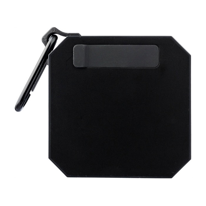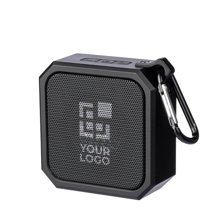 Pequeño altavoz cuadrado personalizable con mosquetón para transporte
