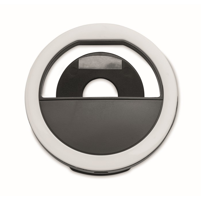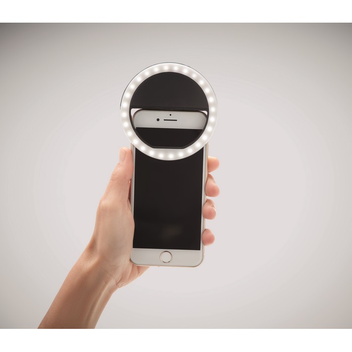 Anillo de luz fabricado en ABS, con 28 LED, ideal para mejorar la iluminación en selfies y videos. Con un diámetro de 8 cm, ofrece luz blanca ajustable en tres niveles de brillo, adaptándose a diferentes necesidades de iluminación. La batería de 80 mAh es recargable mediante un cable micro-USB, que se incluye con el producto, asegurando un uso continuo y sin interrupciones. Perfecto para empresas que buscan promocionar su marca, ya que puede personalizarse con el logotipo corporativo. Útil para profesionales que crean contenido en redes sociales, mejorando la calidad visual de sus publicaciones.