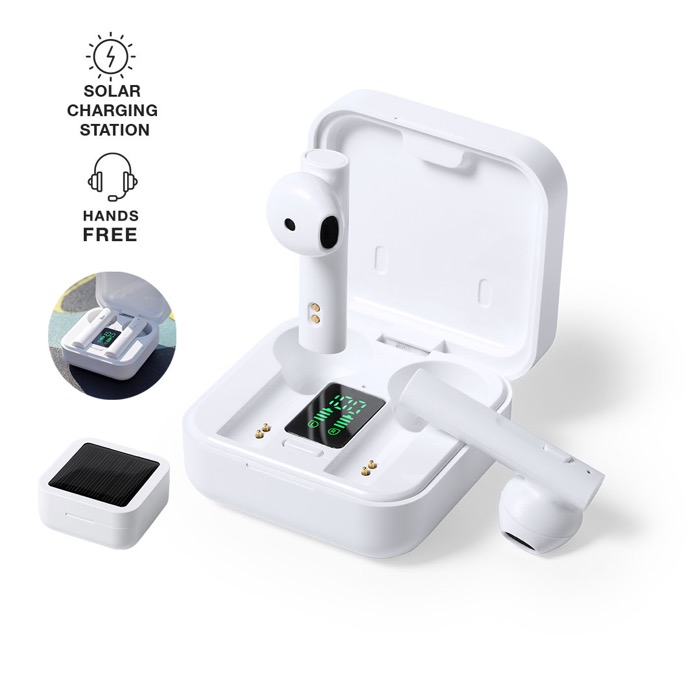 Con unos auriculares inalámbricos con carga solar y conexión Bluetooth 5.0, demuestras tu compromiso con la innovación y la sostenibilidad. La posibilidad de recargarlos con energía solar los convierte en un dispositivo de vanguardia, ideal para usuarios conscientes del medio ambiente. Además, cuentan con un panel de carga solar integrado en la tapa y una pantalla LCD interior que indica el estado de carga, lo que facilita su uso diario. Presentados en un estuche premium con apertura de bisagra, permiten que tu logo tenga una visibilidad constante. Este obsequio tecnológico refuerza la imagen de tu marca como moderna y responsable, asociándola con la autonomía energética y el futuro. Incluyen un botón de control integrado y función manos libres, lo que los hace prácticos para el trabajo.