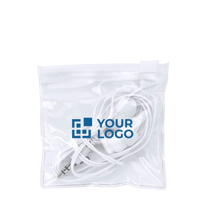 Auriculares fabricados con funda transparente de PVC, ideales para un uso diario y práctico. Equipados con una conexión Jack de 3,5 mm, se adaptan fácilmente a la mayoría de los dispositivos electrónicos. El cable incluye un botón de seguridad, proporcionando un control sencillo y eficiente durante su uso. La funda con autocierre facilita su almacenamiento y transporte, manteniendo los auriculares protegidos y organizados. Perfectos para incluir en kits de bienvenida corporativos o como parte de una estrategia de merchandising, ofreciendo un regalo útil y moderno a clientes y empleados.