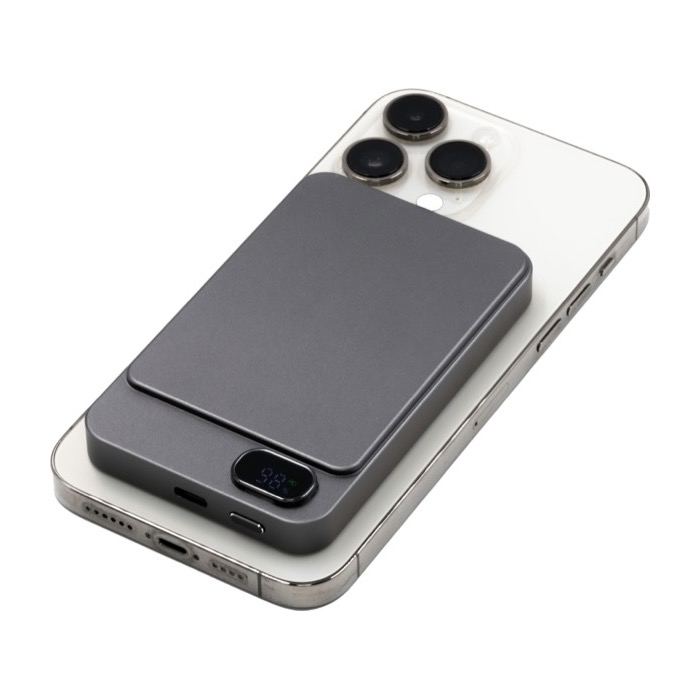 La batería externa de 5.000 mAh, fabricada en aluminio reciclado, combina diseño y funcionalidad en un formato compacto que se adapta a cualquier bolsillo. Ofrece carga inalámbrica magnética de 15 W compatible con MagSafe, Qi1 y Qi2, permitiendo una carga sin cables y sin complicaciones. Además, cuenta con un puerto USB-C de 20 W (Power Delivery 3.0) para cargar computadoras portátiles y otros dispositivos. La pantalla LCD proporciona información clara sobre el nivel de batería y el estado de carga. Un chip inteligente integrado garantiza protección contra sobrecorriente, sobrecarga, sobrecalentamiento y cortocircuito. El broche magnético asegura una fijación rápida y segura. Ideal para empresas que buscan soluciones de carga eficientes y sostenibles, especialmente en eventos corporativos o como parte de kits de bienvenida para empleados.