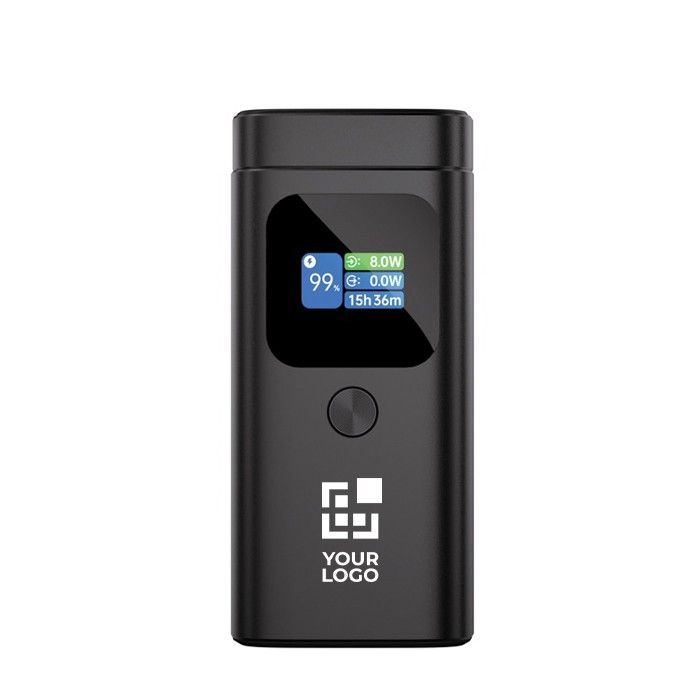 La batería externa de Urban Vitamin, fabricada en aluminio resistente, ofrece una capacidad de 15.000 mAh y es compatible con carga ultrarrápida de 100W. Esto asegura que puedas mantener cargados a máxima velocidad todo tipo de dispositivos, incluidos portátiles y MacBooks. Su pantalla TFT a color proporciona información en tiempo real sobre la velocidad de carga y otros detalles esenciales. Además, cuenta con un soporte magnético inalámbrico de 15W para teléfonos, ideal para un uso con manos libres. Con tres puertos de salida (dos USB-C y un USB-A) y la opción de carga inalámbrica, permite cargar hasta cuatro dispositivos simultáneamente. Libre de PVC, su diseño compacto y portátil se complementa con un acabado premium. Suministrada en una caja de regalo, es perfecta para empresas que buscan soluciones de carga eficientes y elegantes para sus equipos o como obsequios corporativos.