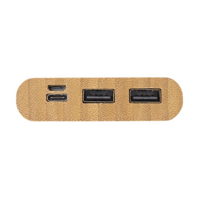 - Batería externa de bambú con capacidad de 10.000 mAh