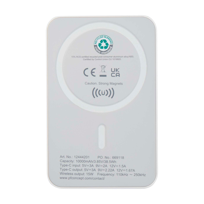 Powerbank inalámbrica magnética de plástico reciclado 10.000 mAh