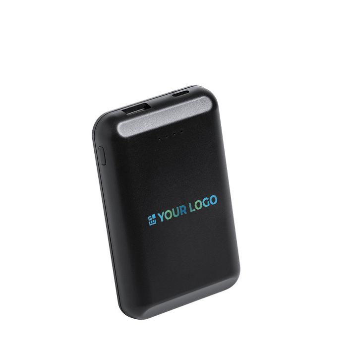 Batería auxiliar externa de carga inalámbrica fabricada con materiales de alta calidad, con una capacidad de 5.000 mAh. Diseñada para ofrecer una fijación magnética, permite usar el dispositivo mientras se carga. Dispone de conexión Tipo-C para entrada de corriente y USB para salida, e incluye un cable de carga Tipo-C. Un botón ON/OFF y ledes indicadores facilitan el control del estado de carga. Se presenta en una atractiva caja de diseño con bandeja de PVC, e incluye instrucciones en español e inglés. Compatible con tecnología Magsafe y Qi gracias a su anillo adhesivo. Ideal para acciones promocionales o como regalo corporativo.