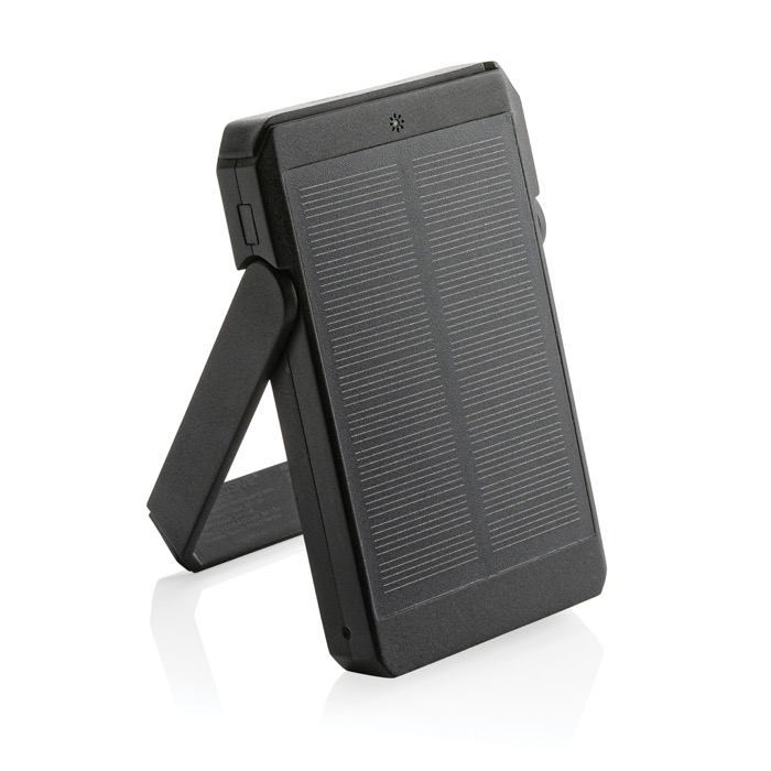 - Powerbank solar de 5.000 mAh con ABS reciclado certificado RCS