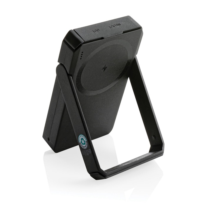 Powerbank solar de 5.000 mAh fabricado con ABS reciclado certificado RCS (Recycled Claim Standard). Este dispositivo combina eficiencia y sostenibilidad, con un contenido reciclado del 21% basado en su peso total. La certificación RCS asegura una cadena de suministro completamente certificada de materiales reciclados. Equipado con paneles solares monocristalinos de alta calidad, ofrece una tasa de conversión del 19%, aunque la carga depende de las condiciones. Incluye una función de soporte para optimizar el ángulo de los paneles solares. La batería de litio de grado A garantiza una larga duración. Además, cuenta con un cargador magnético inalámbrico de 10W para cargar dispositivos sin cables. La velocidad de carga solar es de 5V/130mA, con entrada tipo C de 5V/2A y salida USB-A y tipo C de 5V/2A. Libre de PVC, incluye un cable de carga de TPE reciclado certificado por RCS y se presenta en un envase mixto FSC®. Ideal para empresas que buscan soluciones de carga sostenibles y eficientes, perfecto para eventos corporativos o como parte de una estrategia de marketing ecológica.