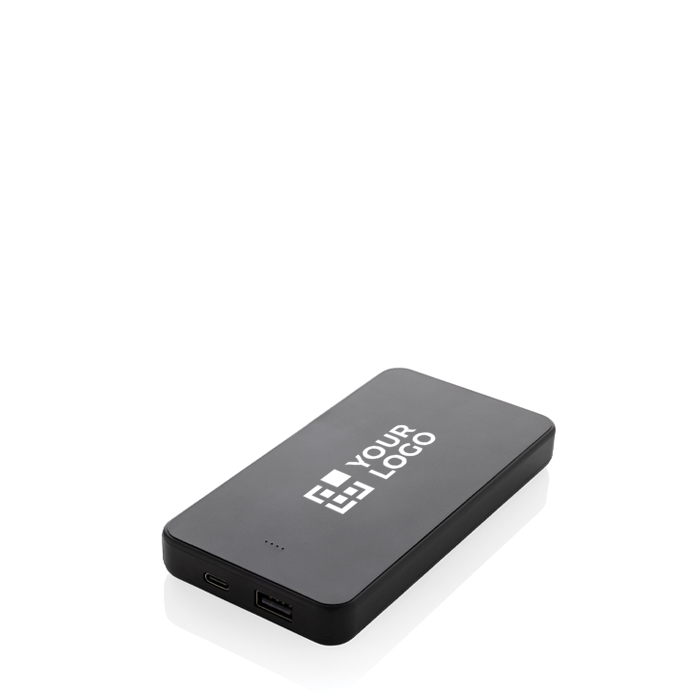 Powerbank de 10.000 mAh fabricada con plástico ABS reciclado, certificada por RCS (Recycled Claim Standard). Equipada con un puerto de entrada/salida USB C y un puerto USB A adicional, esta batería externa es capaz de recargar un teléfono móvil hasta cuatro veces cuando está completamente cargada. La batería de polímero de litio de grado A garantiza una larga duración, mientras que los indicadores de energía te mantienen informado sobre el nivel de carga restante. Con una entrada tipo C de 5 V/2,4 A y salidas USB A de 5 V/2,4 A y tipo C de 5 V/2 A, ofrece una carga rápida y eficiente. Libre de PVC, incluye un cable de carga de TPE reciclado con certificación RCS y se presenta en un embalaje mixto FSC®. Ideal para empresas que buscan soluciones de carga sostenibles y eficientes para sus equipos móviles.