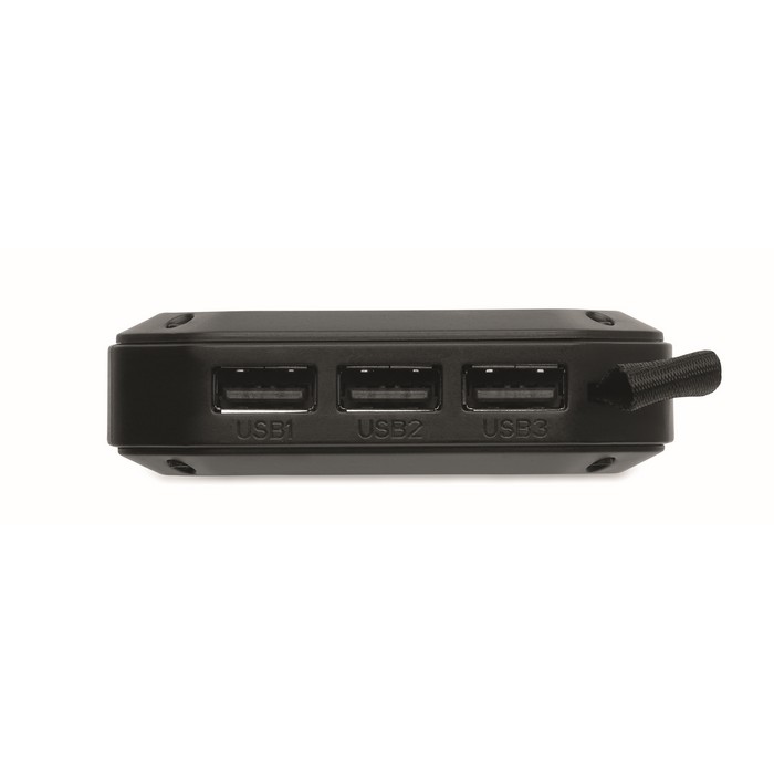 Una batería externa con carga solar de 8.000 mAh te equipa para cualquier entorno exterior. Su panel solar complementa la carga, proporcionando energía adicional cuando no hay enchufes disponibles. Además, incluye una luz de 21 LED, útil para iluminar en condiciones de poca luz. El mosquetón integrado facilita su transporte en actividades al aire libre. También viene con un cable USB y enchufe micro USB, asegurando compatibilidad con múltiples dispositivos. Tu marca se asocia con la aventura y la preparación, garantizando que tus equipos y clientes mantengan sus dispositivos operativos en situaciones desafiantes.