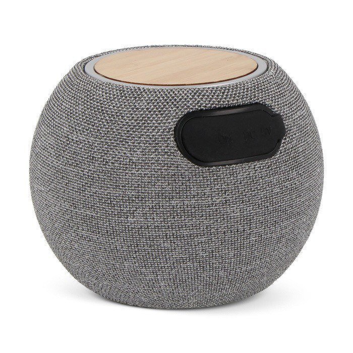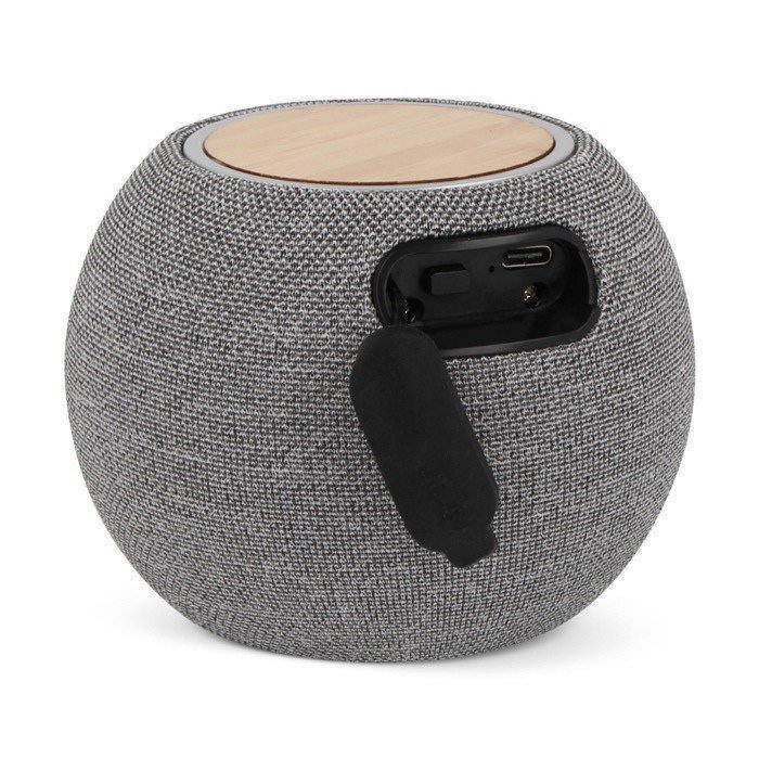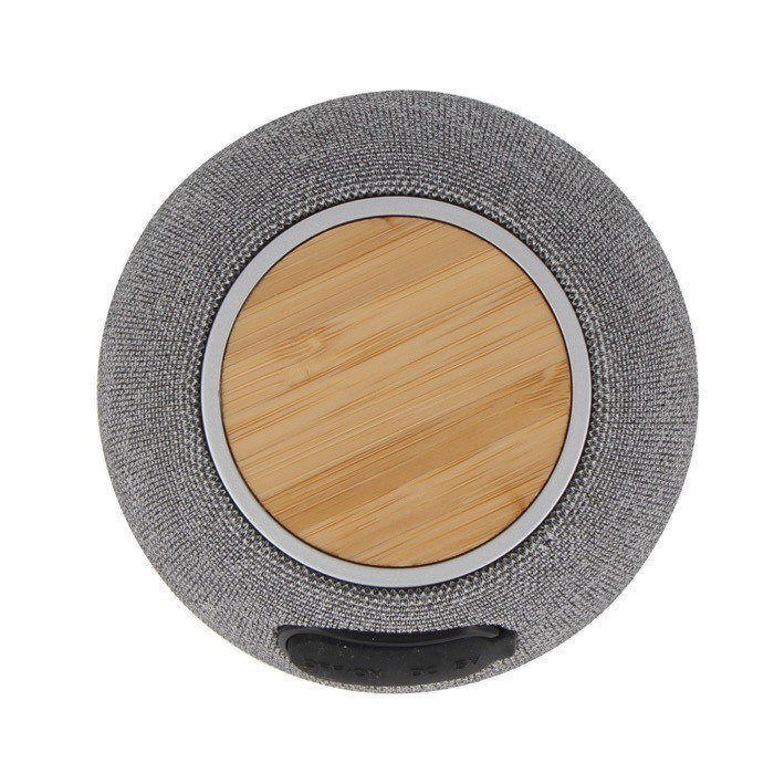 Altavoz y cargador portátil redondo y compacto de RPET y bambú